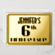 The front of this stylish sixth birthday party foil invitation card design features a custom name, an art deco look inspired number “6th”, the message “BIRTHDAY PARTY”, and a border pattern consisting of lines. The back features personalised details about the event, such as the date, time, venue/place, and any other information that may be relevant. Luxurious, elegant, personalised invitations like these might be used to invite attendees/guests to a birthday gathering/party being held in celebration of somebody’s 6th birthday. [~Z0000606]