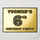 The front of this bold sixth birthday party/celebration foil invitation card features a customisable name, a large number “6th”, the message “BIRTHDAY PARTY!”, and a border, all featuring a rustic, yet sophisticated, faux wood grain appearance inspired pattern. The back features personalised details about the event, such as the date, time, venue/location, and any other useful information. Customised invitations like these might be used to invite guests to a birthday party being held to honour somebody’s 6th birthday. [~Z0000595]