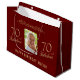 Elegant Red 70 and Fabulous Ornament 70th Birthday Photo Gift Bag. 70 and fabulous text in trendy golden script and an elegant ornament on a dark red background. Personalise it with your name, your age and photo and make personalised elegant gift bag for her.