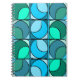Seventies style notebook, with large rounded blue and green patterns