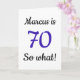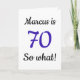 70 so what Funny Quote 80th Birthday Card. A funny and inspirational greeting card for a man or a woman celebrating the 70th birthday. It comes with a funny quote 70 so what, and is perfect for a person with a sense of humor. Add your name and the message inside.