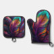 70s 60s Psychedelic Feathers Oven Mitt & Pot Holder Set