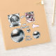 Dive into the dance vibes of the 70's disco era with this image: a silver-grey disco ball spinning on the dance floor. Phrases that encapsulate this iconic dance period. Showcasing disco balls with enchanting mirrored surfaces in a range of vinyl sticker sizes, ideal for personalising your belongings.