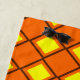 This beach towel has a 1970s design of solid yellow diamonds inside brown diamond outlines on a field of orange.