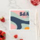1970s vintage retro groovy waves personalised wedding monogram paper napkins in groovy bold typography and pastel colours including; pink and blue. This product is easily editable. If you need help with the customisation of this product or you need more matching products for this collection kindly message me via Zazzle.