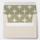 This retro wedding envelope design was inspired by the 70s retro trend. This design is perfect for a retro, boho, disco, or 70s style wedding. The inside of the envelope features a retro star pattern in olive green.