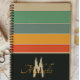 70s retro Navy blue and pink Stripes monogrammed Notebook