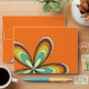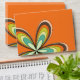 Cute colourful flower shape, vintage style in orange, turquoise, brown, lime green. Modern, trendy with retro feel. Unique, elegant and stylish gift for every woman.