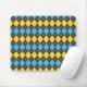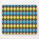 A vibrant retro pattern of blue, yellow, and brown in classic argyle style. It blends nostalgia and modern flair, evoking 70s charm while adding colorful geometric elegance to any surface.