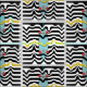 A skateboard with a retro, seventies, trippy pattern.