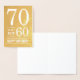 This humourous 70th birthday card features the words "70 is the new 60 Happy Birthday" in white against gold foil.