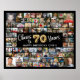 70th Birthday 92 Photos Black Gold Cheers To Years Poster. Create a 70th birthday photo memory display printed on a poster print utilising this easy-to-upload photo collage template with 92 pictures in various sizes to accommodate pictures of her or him through the years for a fun birthday sign or party decoration and commemorative keepsake. The design features the title CHEERS TO 70 YEARS with gold foil balloon numbers and your custom text (the sample says HAPPY BIRTHDAY NAME) in your choice of text of font styles and colours as well as background colour (shown in black). OPTIONS: The sample is shown in a 36x29" size on Value Paper (Matte); other standard and custom print sizes, paper quality and framing, Instant Digital Download file for printing locally or transferring the design to a foam board, banner, canvas or other product options are available on the ordering page. RESIZING TIP: Choose Custom Size for even borders by changing the height and width proportionately AFTER clicking the UNLOCK icon (looks like a chain link). ASSISTANCE: For help with design modification or personalisation, colour change, resizing or transferring the design, contact the designer BEFORE ORDERING via the Zazzle Chat MESSAGE tab or email makeitaboutyoustore@gmail.com.