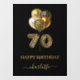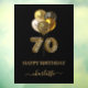 For a glamourous 70th birthday party. A black background, decorated with balloons. With the text: Happy Birthday. Personalise and add a name. The name is written in dark rose gold with a modern hand lettered style script with swashes. Number 70 is written with a trendy balloon style font, leopard pattern. To keep the swashes only delete the sample name, leave the spaces or emoji's in front and after the name.