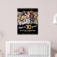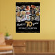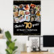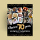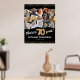Elegant 70th birthday party picture poster featuring a stylish black background that can be changed to any colour, a 15 photo collage through the years, the saying 'cheers to 70 years', gold glitter edges, their name, and the date of the celebration.