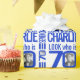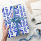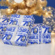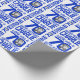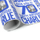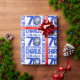 Fun 70th blue on white personalized photo milestone birthday wrap. Personalize this birthday wrapping paper with two photographs of the birthday girl in the middle of the number 0. Great idea for adding some fun to a milestone seventieth birthday gift. Other matching items and colors are available. Exclusive design by Sarah Trett for www.mylittleeden.com