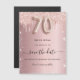 A girly and trendy Save the Date card for a 70th birthday party. A blush pink gradient background decorated with rose gold and faux silver glitter drips,sparkles. Personalise and add a date and name/text. The text: Save the Date is written with a large trendy hand lettered style script with swashes. Number 70 with a balloon style font.