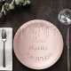70th birthday blush rose gold glitter drips name paper plate