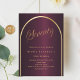 An elegant 70th birthday invitation. A burgundy background with a golden arch on the front.