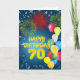Exploding fireworks light up the sky on this spectacular 70th birthday card. A lot of celebration balloons add to the party feeling . A birthday card suitable for everybody. Copyright Norma Cornes.