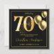 70th Birthday Celebrating in and Black and Gold on both Front and Back Elegant Invitation. Invite friends and family to a celebration of a big milestone, and a long and content rich life for a special person. This is her (or his) time to shine. Gold balloons, glitter and confetti - let it sparkle.