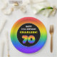 70th Birthday: Colourful Rainbow # 70, Custom Name Paper Plate