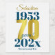 A bold and striking 70th birthday date wine label. This special milestone birthday bottle label consists of birth and birthday date in blue typography - with the 70 and name highlighted in a gold effect font.  Add a message for a custom gift or birthday party personalised drinks.