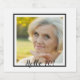 A slim white and black frame and template for Your photo. Black text overlay: Hello 70! A label for a 70th birthday party.