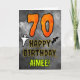 The front of this spooky and scary Hallowe’en themed birthday greeting card design features a large number “70”. It also features the message “HAPPY BIRTHDAY,”, and an editable name. There are also depictions of a ghost and a bat on the front. The inside features a personalised birthday greeting message, or could perhaps be cleared and left blank if a message is to be written by hand instead. A customisable birthday card like this might be a fun way to send a message in celebration of somebody’s seventieth birthday that also falls on Halloween (October 31st). [~Z0000547]