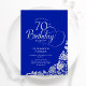 70th Birthday Elegant Royal Blue Silver Roses Invitation