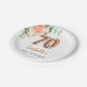 70th birthday floral rose gold eucalyptus monogram paper plate