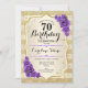 70th Birthday - Gold Stripes Purple Roses Invitation