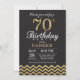 70th Birthday Invitation with Black and Gold Glitter Chevron. Chalkboard. Adult Birthday. Man or Women Bday Invite. For further customisation, please click the "Customise it" button and use our design tool to modify this template.