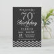 70th Birthday Invitation with Black and Silver Glitter Chevron. Chalkboard. Adult Birthday. Man or Women Bday Invite. For further customisation, please click the "Customise it" button and use our design tool to modify this template.