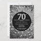 70th Birthday Invitation. Black and Silver Glitter. Silver Diamond. Adult Birthday Party. For Men or Women. For further customisation, please click the "Customise it" button and use our design tool to modify this template.