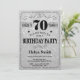 70th Birthday Invitation Black and Silver Glitter