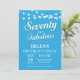 70th Birthday Invitation with String Lights Blue Background. Woman Birthday Party. Seventy and Fabulous. Any age. For further customisation, please click the "Customise it" button and use our design tool to modify this template.