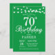 70th Birthday Invitation with String Lights. Green Background. Men or Women Birthday. 13th 15th 16th 18th 20th 21st 30th 40th 50th 60th 70th 80th 90th 100th, Any age. For further customisation, please click the "Customise it" button and use our design tool to modify this template.