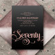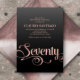 Set the tone for a chic celebration with our elegant black and rose gold 70th birthday invitation. Featuring bold, retro typography and a sleek design, this invitation exudes a glamourous and stylish vibe—perfect for a women's 70th birthday party. Choose to order printed invitations or download digital invitations for instant access. Make this milestone birthday unforgettable—order your elegant birthday invitations now!