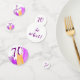 70th birthday personalised tulip flower confetti with age and motivational text So what ! with purple, yellow and pink tulips. A great party supplie for her celebrating the 70th birthday. Great for the birthday party for a person with a sense of humour. You can customise the confetti with your age number.