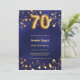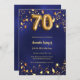 A modern, stylish invitation for a 70th birthday. A navy blue background, decorated with golden stars. The blue colour is uneven. Personalise and add your name and party details.
