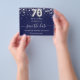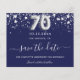 70th birthday navy blue silver save date budget flyer