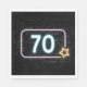 Glowing neon sign with a star on a dark brick city wall for 70th birthday party.