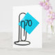 An aqua reminder note on a giant black paper clip on white for a 70th birthday.