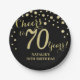 70th Birthday Party Black and Gold Diamond Paper Plate