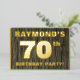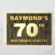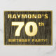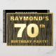 The front of this bold seventieth birthday celebration foil invitation card features an editable name, a large number “70th”, the message “BIRTHDAY PARTY!”, and a border, all in foil. The background of the front features a rustic, yet sophisticated, faux wood grain look inspired pattern. The back features personalised details about the event, such as the date, time, venue/place, and any other important information. Customised invitations like these might be used to invite guests/attendees to a birthday gathering being held in celebration of somebody’s 70th birthday. [~Z0000598]