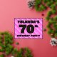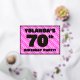The front of this fun and joyful seventieth birthday party/celebration foil invitation card design features an editable name, a large number “70th”, the message “BIRTHDAY PARTY!”, and a border. The background of the front features a loving dark pink and light pink stripes pattern, with heart shapes. The back features personalised details about the event, such as the date, time, place/venue, and any other information that may be useful. Customised invitations like these might be a fun way to invite guests/attendees to a birthday gathering being held in celebration of somebody’s 70th birthday. [~Z0000603]