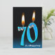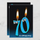 Aqua and blue gradient background with eyeballs on candles for 70th Birthday party invitation.
