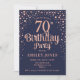 Elegant design in navy blue and faux glitter rose gold. Features stylish script font and confetti. Message me if you need custom age.