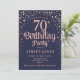 70th Birthday Party - Navy & Rose Gold Invitation
