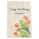 70th birthday watercolor gift bag featuring a delicate hand painted parakeet perched among soft blooming tulips on a warm, peaceful background. Designed with gentle detail and calming color, this elegant nature inspired gift bag adds a beautiful, meaningful touch to any birthday present.